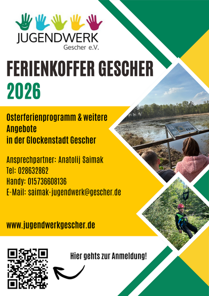 Das Jugendwerk Gescher bietet seit vielen Jahren Spiel, Spass und Spannung für Kinder und Jugendliche in der Stadt Gescher. Zahlreiche Vereine und Institutionen, aktive Jugendgruppen und Initiativen kooperieren mit uns und sorgen für interessante Unterhaltung und Bildung.
